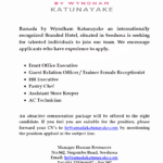 RAMADA WYNDHAM KATUNAYAKE Hotel Job Vacancies Featured Accounting/Auditing/Finance, Customer Relations/Public Relations, Hotels/Restaurants/Food/Bar/Spa, Human Resource /HR/Training, Office Admin/Secretary/Receptionist Gampaha Full Time Urgent