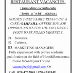 Sales Executive | Front Office Supervisor|Guest Relations Officer/Trainees|Restaurant Waiter Featured Hotels/Restaurants/Food/Bar/Spa, Sales/Marketing/Merchandising Full Time Urgent