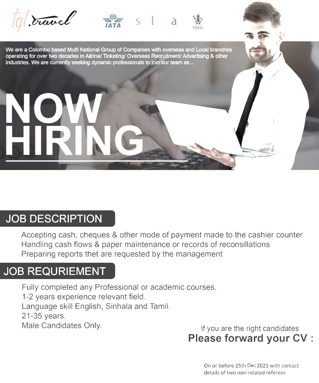 We are a Colombo based Multi National Group of Companies with overseas and Local branches operating for over two decades in Ailrine/ Ticketing/ Overseas Recruitment/ Advertising & other industries. We are currently seeking dynamic professionals to join our team as…