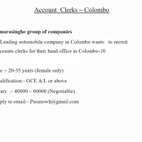 A Leading automobile company in Colombo wants to recruit Accounts clerks for their head office in Colombo-10