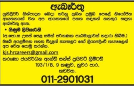 Karuna Jayawardena & Sons Private Limited 193/1/ B, Block 9, Kandy Road, Kadawatha.