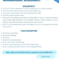 •G.C.E (A\L) with a minimum of 3 years of experience in a similar capacity.