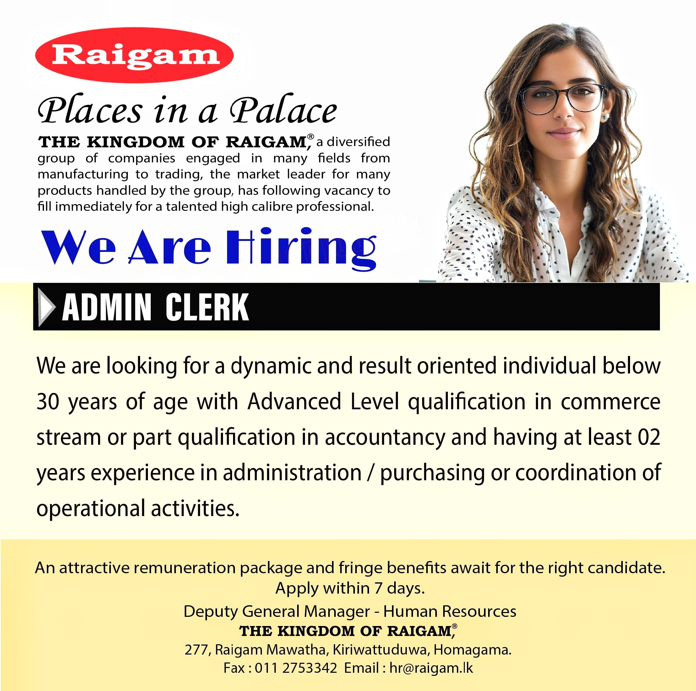 THE KINGDOM OF RAIGAM, a diversified group of companies engaged in many fields from manufacturing to trading, the market leader for many products handled by the group, has following vacancy to fill immediately for a talented high calibre professional.