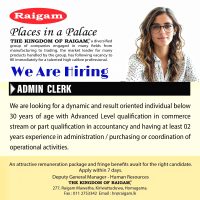 We are looking for a dynamic and result oriented individual below 30 years of age with Advanced Level qualification in commerce stream or part qualification in accountancy and having at least 02 years experience in administration / purchasing or coordination of operational activities.