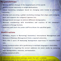 Bachelor’s degree in Marketing/ Economics/ International Management and Business or Business Management from a reputed university.