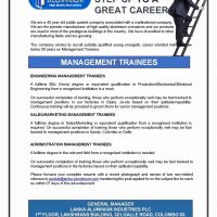 The company wishes to recruit suitably qualified young energetic, career oriented indiv below 30 years as Management Trainees.