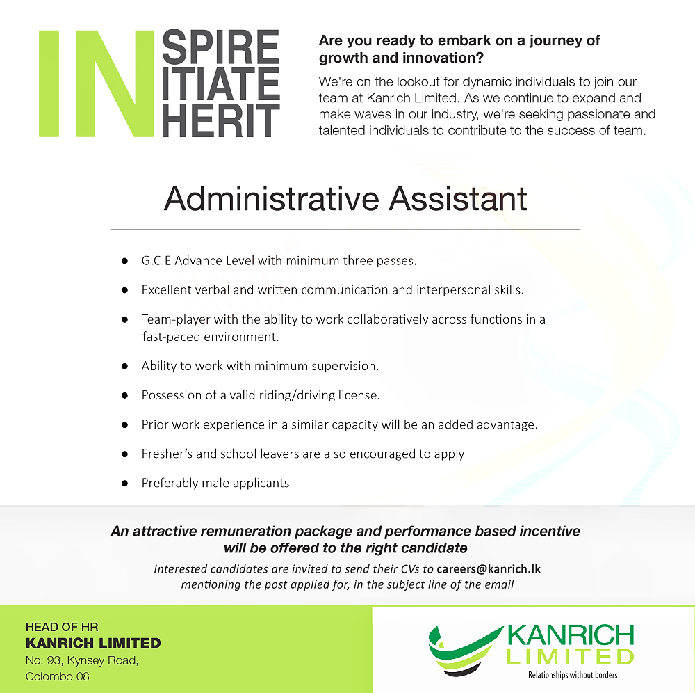 Interested candidates are invited to send their CVs to careers@kanrich.lk mentioning the post applied for, in the subject line of the email