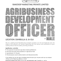 We are a leading Food Manufacturing Company Located in Ja- Ela and Dambulla area. the duties of this position will include interacting with the farmers and certification to grow quality produce, improve yields, providing assistance.