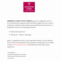 an Internationally recognized Hotel with Nine Lodges. We are in search of dynamic individuals with professional qualifications & experience in hospitality trade for the following vacancies.