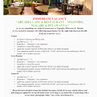 As we are expanding our chain of restaurants to Negombo, Pelawatta & Malabe, we are excited to announce the following opportunities for the right individual, preferably from the respective areas,
