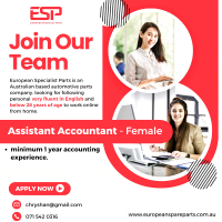 European Specialist Parts is an Australian based automotive parts company. looking for following personal very fluent in English and below 28 years of age to work online from home.
