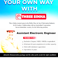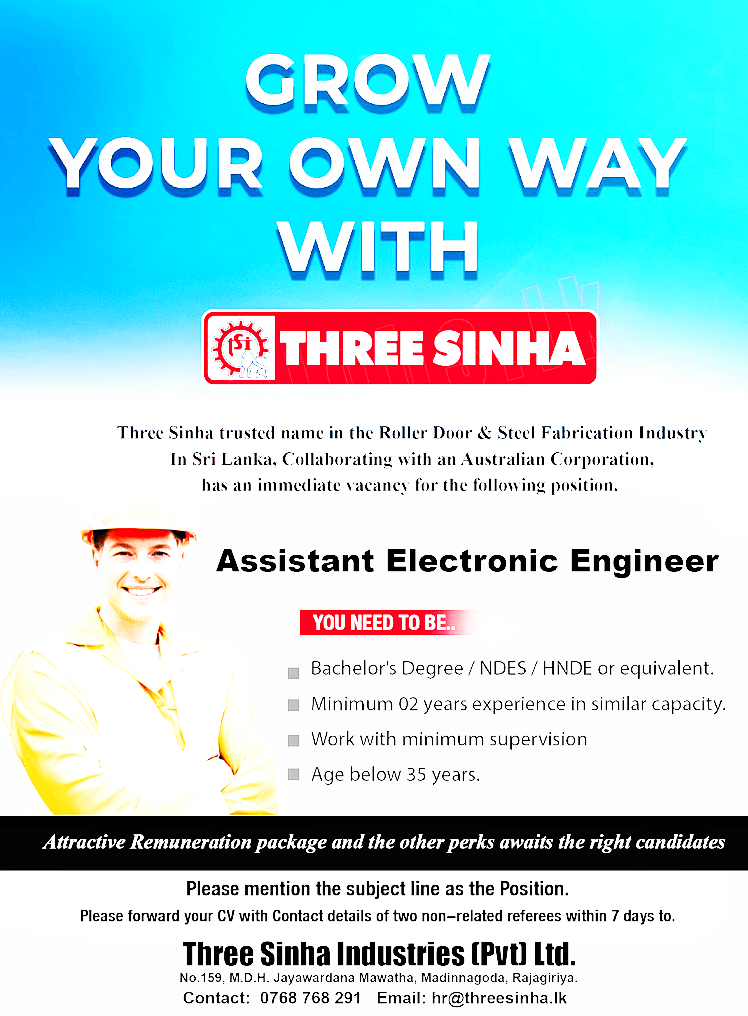 Three Sinha trusted name in the Roller Door & Steel Fabrication Industry In Sri Lanka, Collaborating with an Australian Corporation. has an immediate vacancy for the following position.
