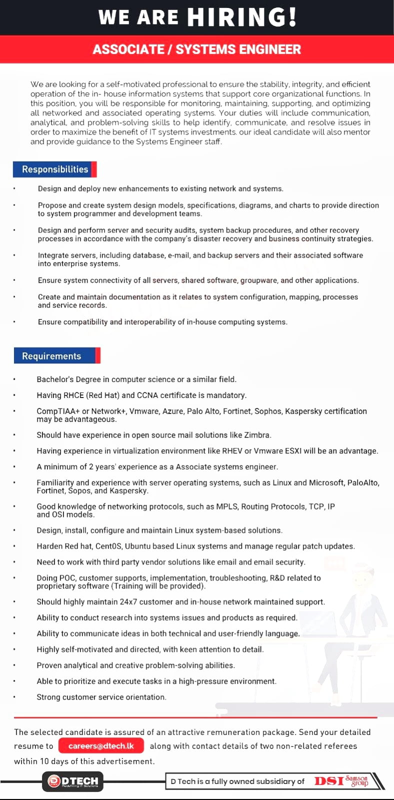 A minimum of 2 years’ experience as a Associate systems engineer.