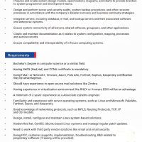 Having RHCE (Red Hat) and CCNA certificate is mandatory.