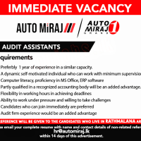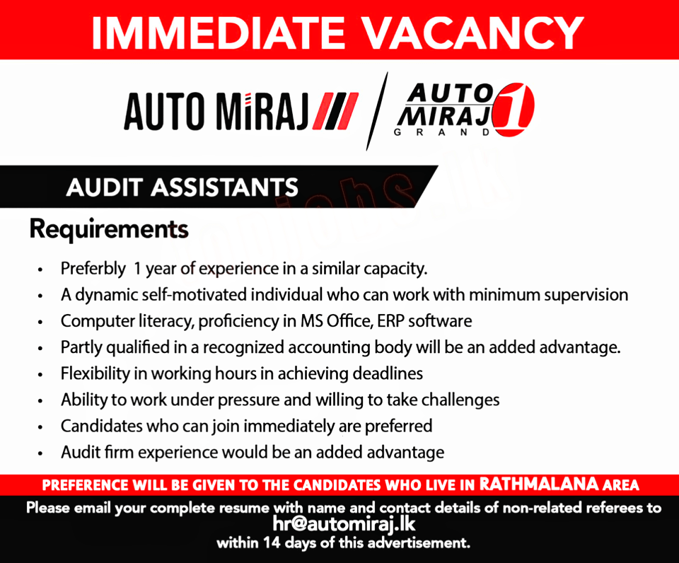 Please email your complete resume with name and contact details of non-related referees to hr@automiraj.lk within 14 days of this advertisement.