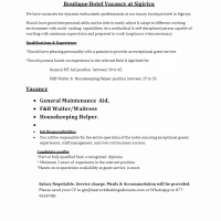 We have vacancies for dynamic enthusiastic professionals at our luxury boutique hotel in Sigiriya.