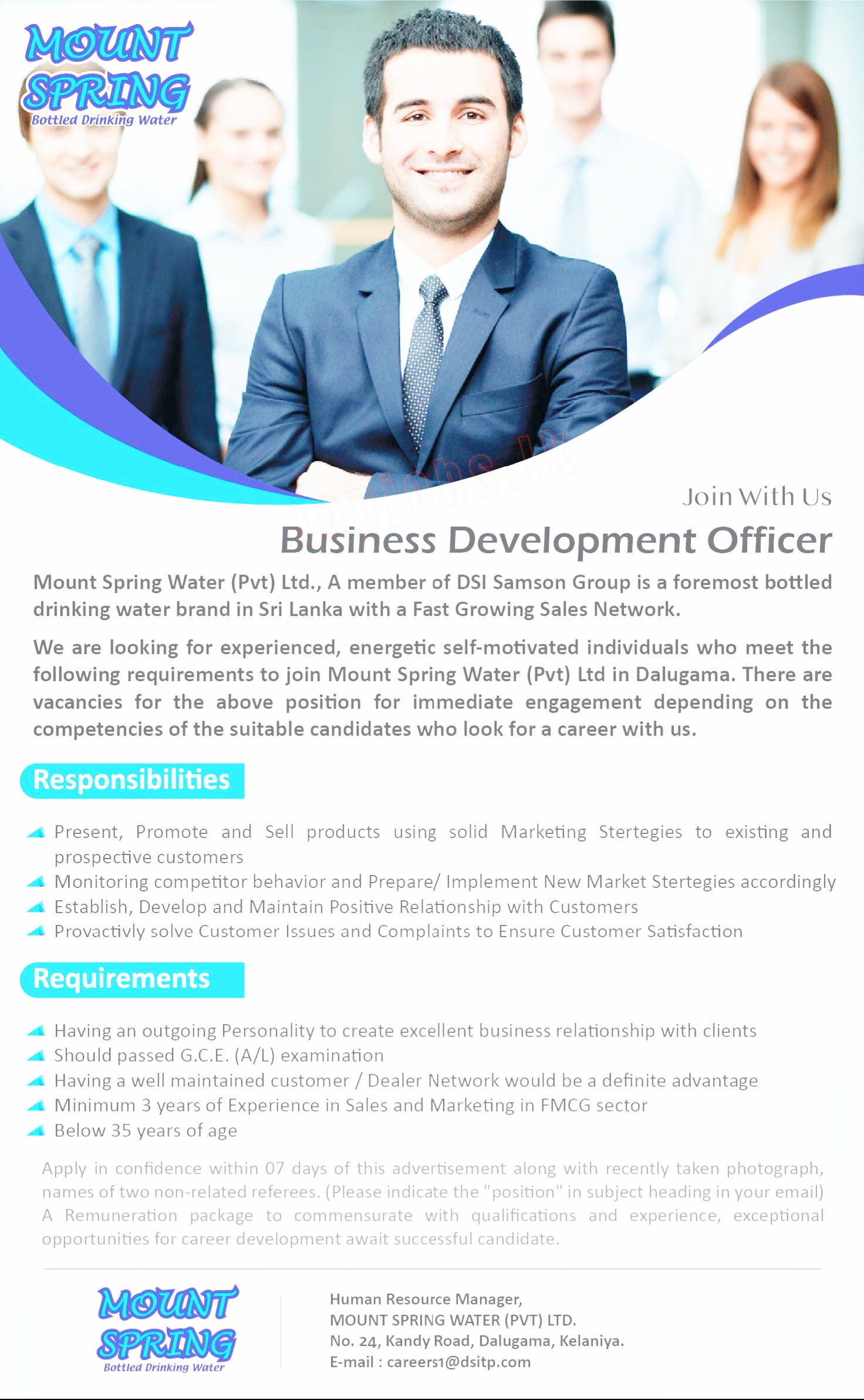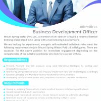 following requirements to join Mount Spring Water (Pvt) Ltd in Dalugama. There are