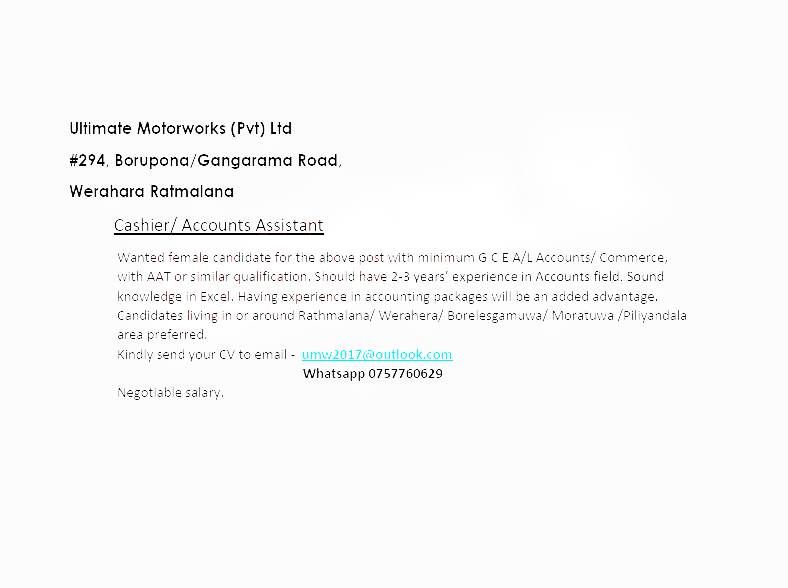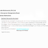 Wanted female candidate for the above post witn minimurm G CEA/LACCounts Commer