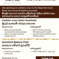 There are job opportunities in a bakery near Negombo city. Accommodation and food facilities are free.