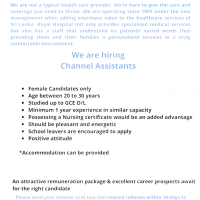 Please send your resume with two non-related referees within 14 days to hr@royalhospitals.com or contact us on 0775647129