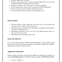 Job Description - Advising customers on their applications for consular services, the documents they need to provide etc, by phone, email and in person.