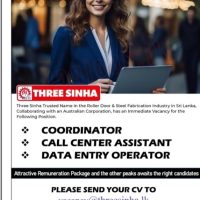 Three Sinha Trusted Name in the Roller Door & Steel Fabrication Industry in Sri Lanka, Collaborating with an Australian Corporation, has an Immediate Vacancy for the Following Position.