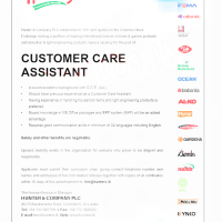 Hunter & Company PLC established in 1911 and quoted on the Colombo Stock Exchange holding a portfolio of leading International brands in home & garden products and industrial & light engineering products, have a vacancy for the post of