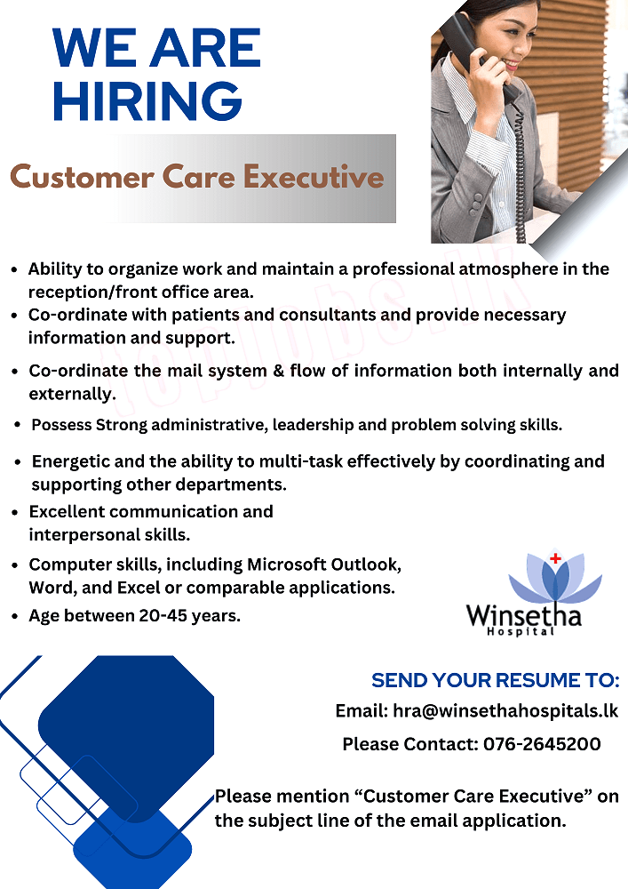 Please mention “Customer Care Executive” on the subject line of the email application.