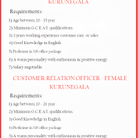 CUSTOMER RELATION OFFICER-FEMALE KURUNEGALA
