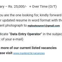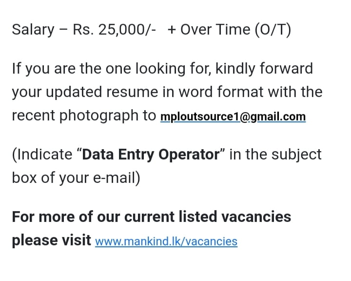 For more of our current listed vacancies please visit www.mankind.lk/vacancies