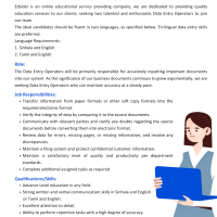education services to our clients, seeking two talented and enthusiastic Data Entry Operators to join