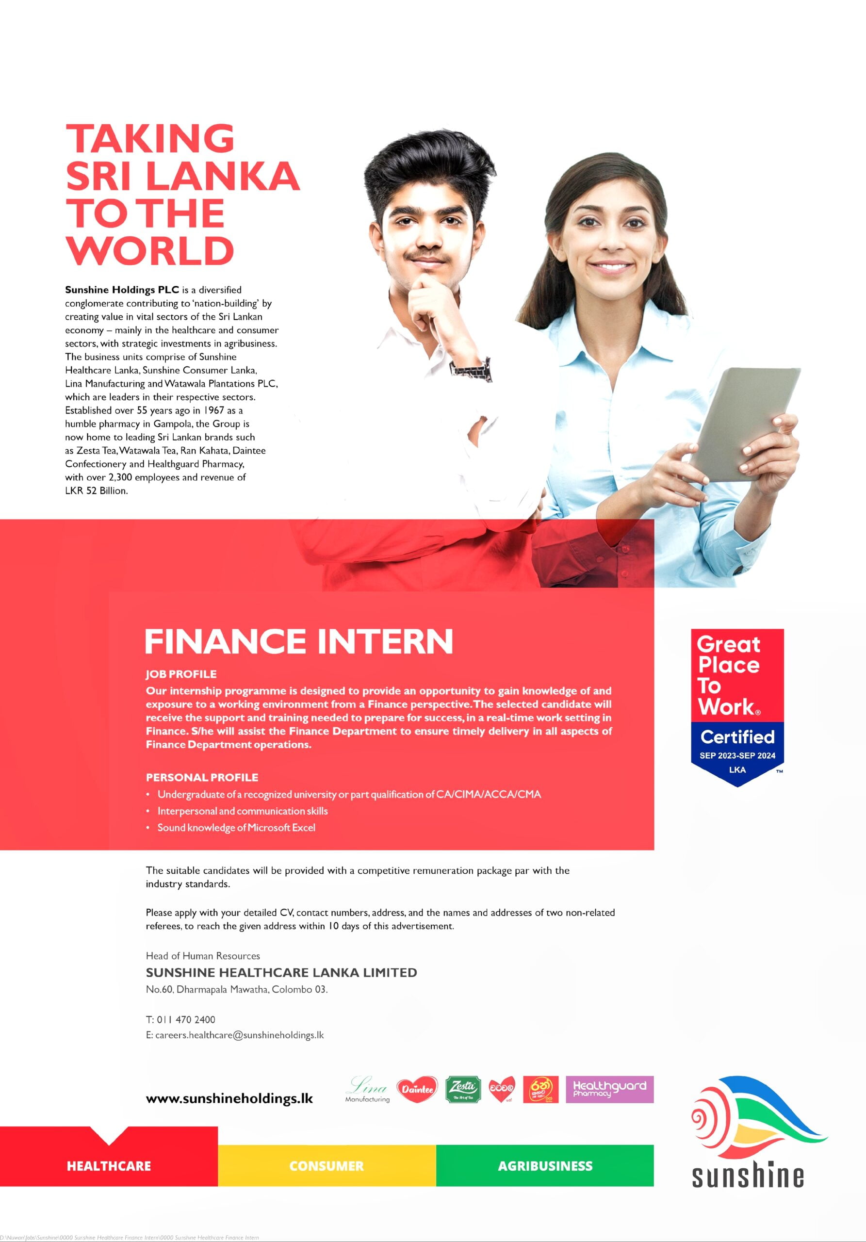 Head of Human Resources SUNSHINE HEALTHCARE LANKA LIMITED No.60. Dharmapala Mawatha, Colombo 03.