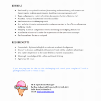 Handle the admin work under the supervision of the operations manager