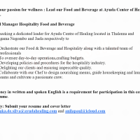 Ignite your passion for wellness: Lead our Food and Beverage at Ayuda Center of Healing Pvt Ltd.