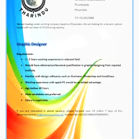 If you are interested in above vacancy, please forward your CV within 7 days of this advertisement to hr@tharinduprinters.lk. Contact No: 0112615888/0704090091