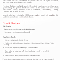 If you are interested please forward your curriculum vitae along with the contact details of two non-related referees to reach us within 7 days of this advertisement to careers@nchs.edu.lk.
