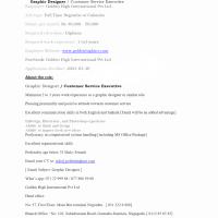 Graphic Designer / Customer Service Executive Employer: Golden High International Pvt Ltd –