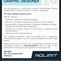 We are looking for a performance oriented, self-motivated, creative individual who is willing to embark on a career in Designing.