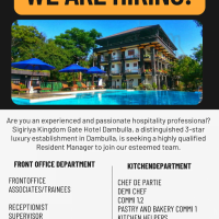 Sigiriya Kingdom Gate Hotel Dambulla, a distinguished 3-star luxury establishment in Dambulla, is seeking a highly qualified Resident Manager to join our esteemed team.