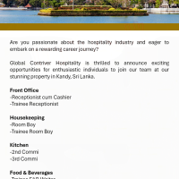 Global Contriver Hospitality is thrilled to announce exciting opportunities for enthusiastic individuals to join our team at our stunning property in Kandy, Sri Lanka.