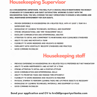 AS A HOUSEKEEPING SUPERVISOR, YOU WILL PLAY A CRUCIAL ROLE IN MAINTAINING THE HIGHEST STANDARDS OF CLEANLINESS AND GUEST SATISFACTION. WORKING CLOSELY WITH THE HOUSEKEEPING TEAM, YOU WILL OVERSEE THE DAILY OPERATIONS TO ENSURE A WELCOMING AND WELL-MAINTAINED ENVIRONMENT FOR OUR GUESTS.