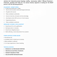 LALAN ENGINERRING (PVT) LTD, a fully fledged member of the group providing exclusive solutions for industrial process Heating, Cooling, Automation, Water / Effluent treatment, Chemicals Synthetic MT Fluids etc. for various industry segments is looking for the RIGHT person to fill the following positions.