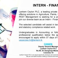 Lankem Ceylon PLC, a leading private sector conglomerate offering solutions in Agriculture, Paints, Industrial Chemicals, PEST Management is seeking for a proactive individual to join our diverse team as an Intern – Finance