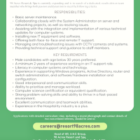 - Experience in the Hospitality industry is a plus.