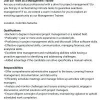 Are you a meticulous professional with a drive for project management? Do you find joy in orchestrating intricate tasks to guarantee seamless management? If so, we extend a warm invitation for you to explore an enriching opportunity as our Management Trainee.