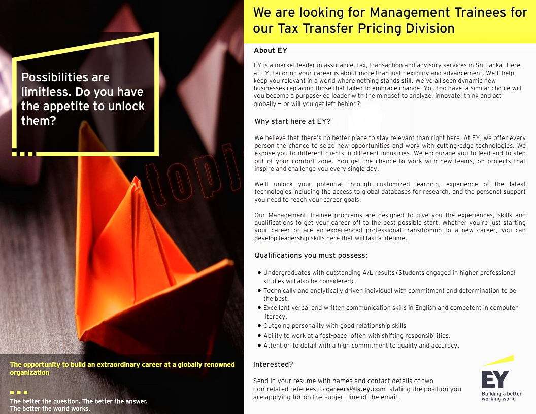 EY is a market leader in assurance, x, transaction and advisory services in Sri Lanka. Here