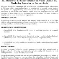 - Passed GCE (O/L) Examination in six subjects having 4 credits including English / Mathematics, with 4 years of marketing experience in a reputed institute,