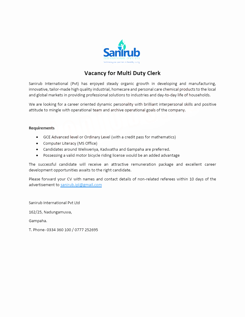 Vacancy for Multi Duty Clerk
