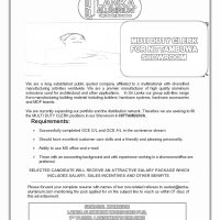We are currently expanding our portfolio and the distribution network. Therefore we are seeking to fill the MULTI DUTY CLERK positions in our Showroom in NITTAMBUWA.