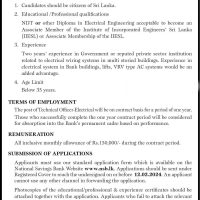 The post of Technical Officer-Electrical will be on contract basis for a period of one year. Those who successfully complete the one year contract period will be considered for absorption into the Bank’s permanent cadre based on performance.